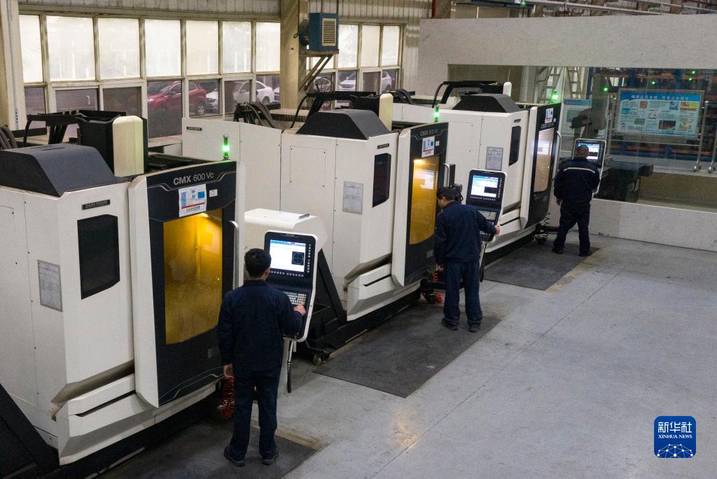 2月17日,在位于陜西省寶雞市的中國中鐵電氣化局高鐵電氣的生產(chǎn)車(chē)間,工人們在進(jìn)行“簡(jiǎn)統化”接觸網(wǎng)零部件模具加工(無(wú)人機照片)。