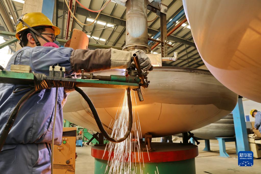 2月16日,工人在位于興仁鎮的南通四方罐式儲運設備制造有限公司標罐車(chē)間忙碌。
