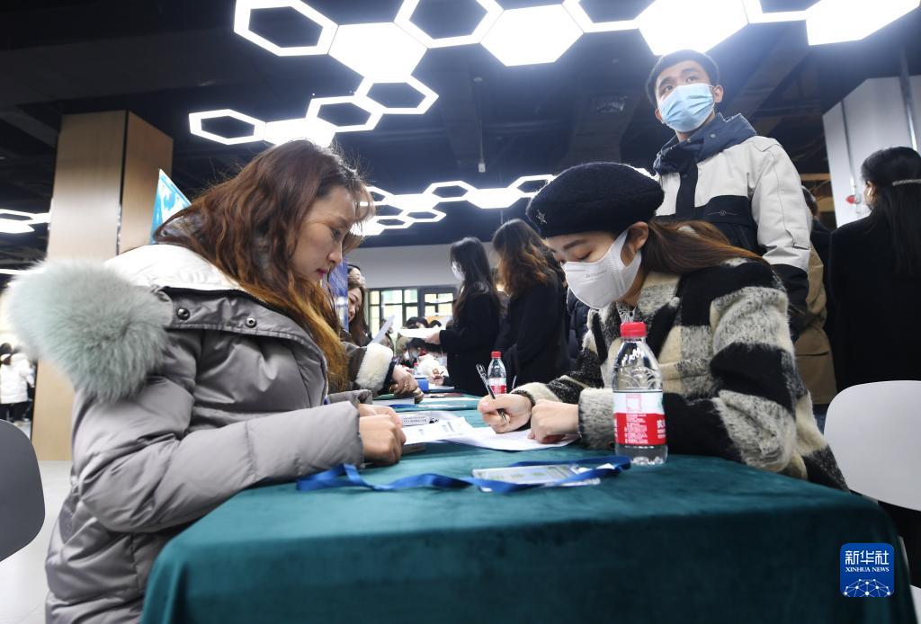 2月17日,求職者在人才集市上填寫(xiě)求職意向表。