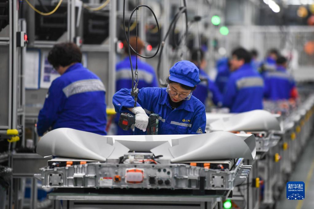 在位于江蘇常州溧陽(yáng)的上汽時(shí)代動(dòng)力電池系統有限公司,工人在車(chē)間進(jìn)行電池生產(chǎn)(2月16日攝)。常州市擁有鋰電池電芯及配套生產(chǎn)企業(yè)120余家,動(dòng)力電池產(chǎn)業(yè)2022年實(shí)現產(chǎn)值超1700億元。