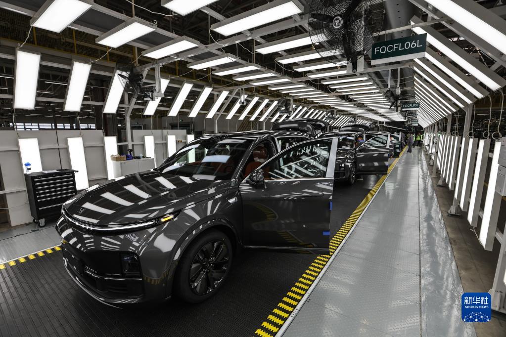 理想汽車(chē)常州基地的工人在加緊生產(chǎn)(2月15日攝)。截至2022年底,常州市新能源汽車(chē)整車(chē)年產(chǎn)量超34萬(wàn)輛。