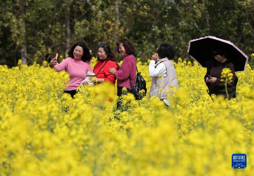 2月17日,人們在云南省昆明市呈貢區臥龍古漁村觀(guān)賞油菜花。