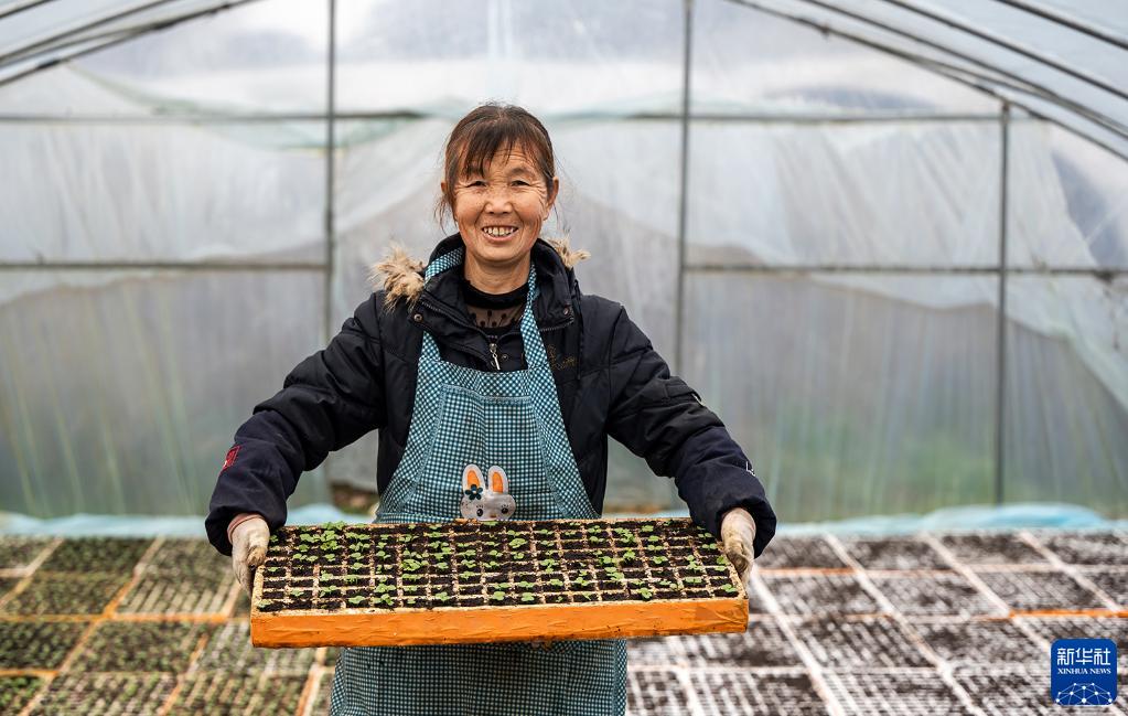 2月17日,村民在貴州省六盤(pán)水市六枝特區木崗鎮戛隴塘村育苗。