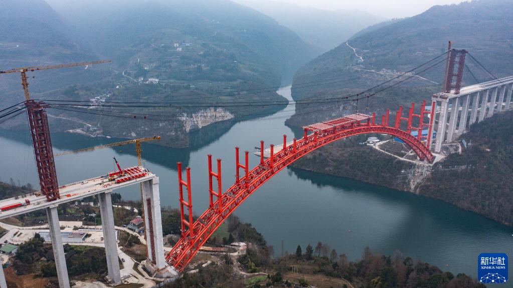 正在進(jìn)行橋面系施工的德余高速烏江特大橋(2月17日攝,無(wú)人機照片)。