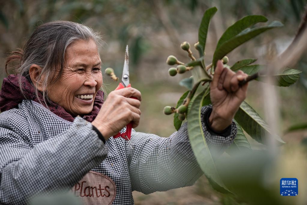 2月18日,村民在貴州省安順市關(guān)嶺布依族苗族自治縣斷橋鎮斷橋村田間為果樹(shù)剪枝。