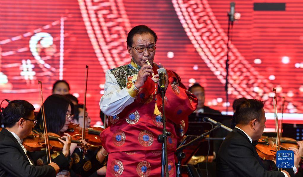 2月18日,演奏家次旦在2023年藏歷新年音樂(lè )會(huì )上表演鷹笛獨奏《雪域牧歌》。