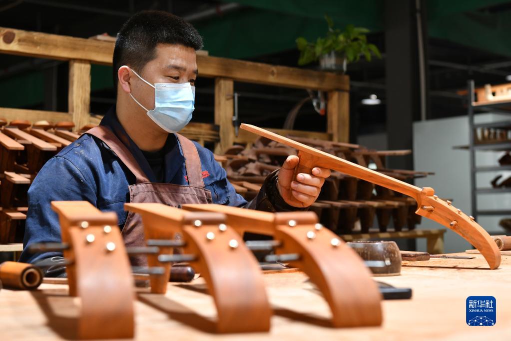 2月18日,河北省肅寧縣一家民族樂(lè )器生產(chǎn)企業(yè)的工人在生產(chǎn)車(chē)間內制作樂(lè )器。