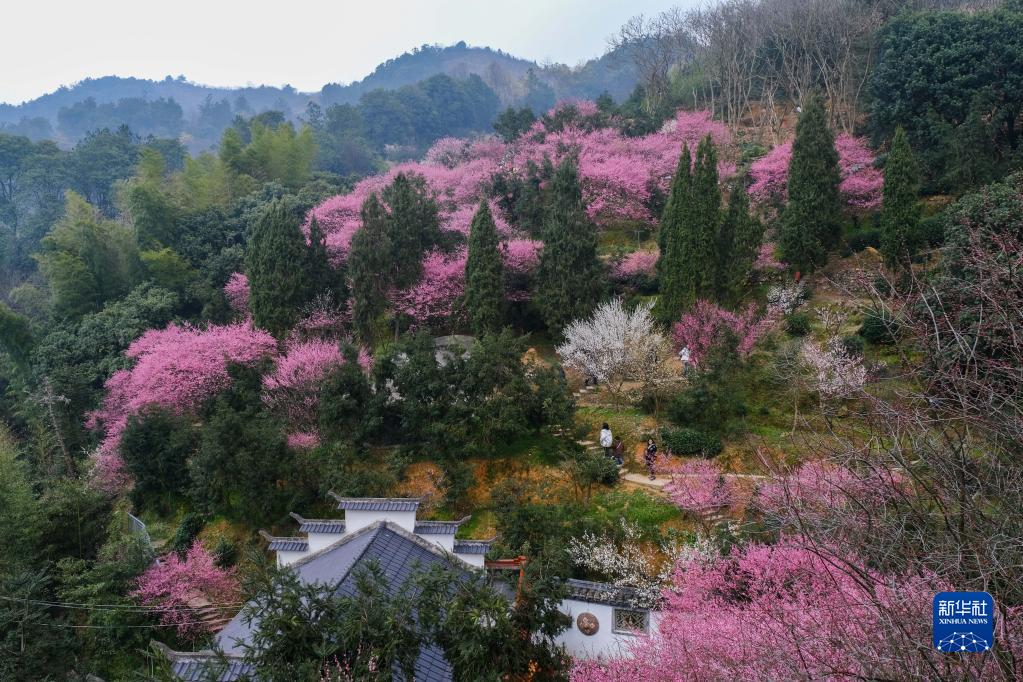 當日是雨水節氣,浙江省諸暨市東白湖鎮斯宅村依山而建的斯舜梅園吸引了不少游客前來(lái)踏春賞梅。該梅園種植近500株梅樹(shù),主要有紅梅、白梅、垂枝梅、臘梅等10多個(gè)品種的梅花,是當地鄉村旅游的一大特色。