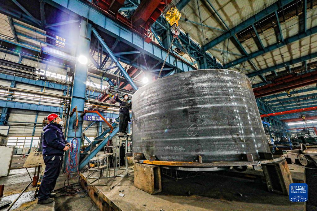 工人在位于遼寧省沈陽(yáng)市的北方重工有限公司車(chē)間加工零部件(1月13日攝)。