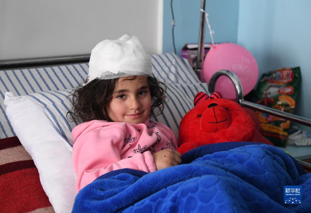 2月17日,在敘利亞阿勒頗省首府阿勒頗市,一名在地震中受傷的女孩在醫院接受治療。