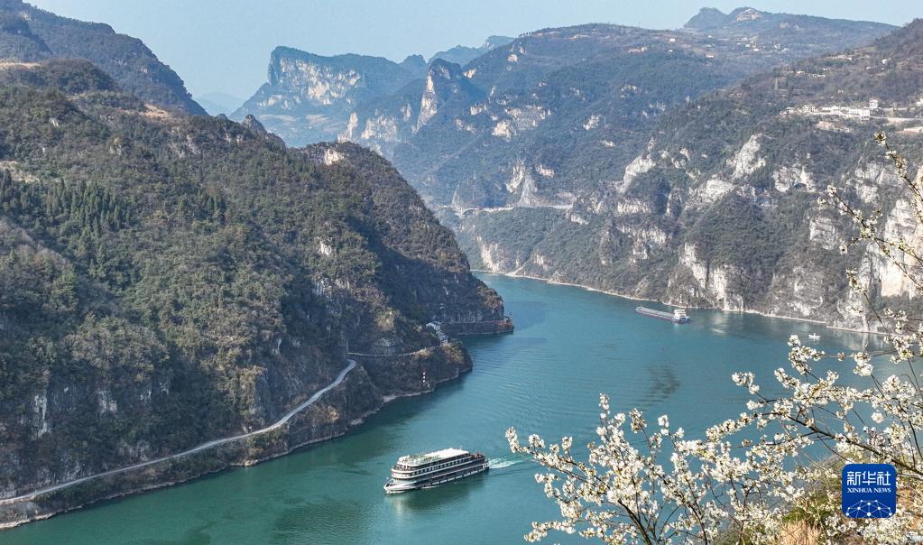 春到峽江,一江春水碧綠,兩岸山花盛開(kāi),船舶往來(lái)如梭,構成一幅美麗的畫(huà)卷。