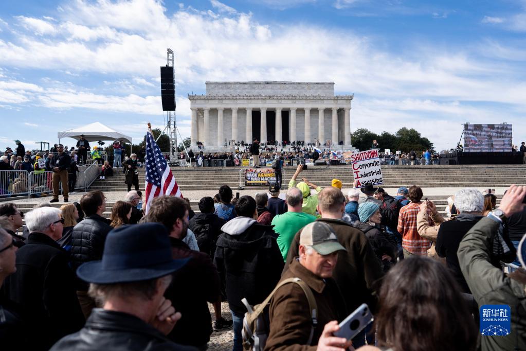 2月19日,在美國首都華盛頓,人們在林肯紀念堂前參加集會(huì )。