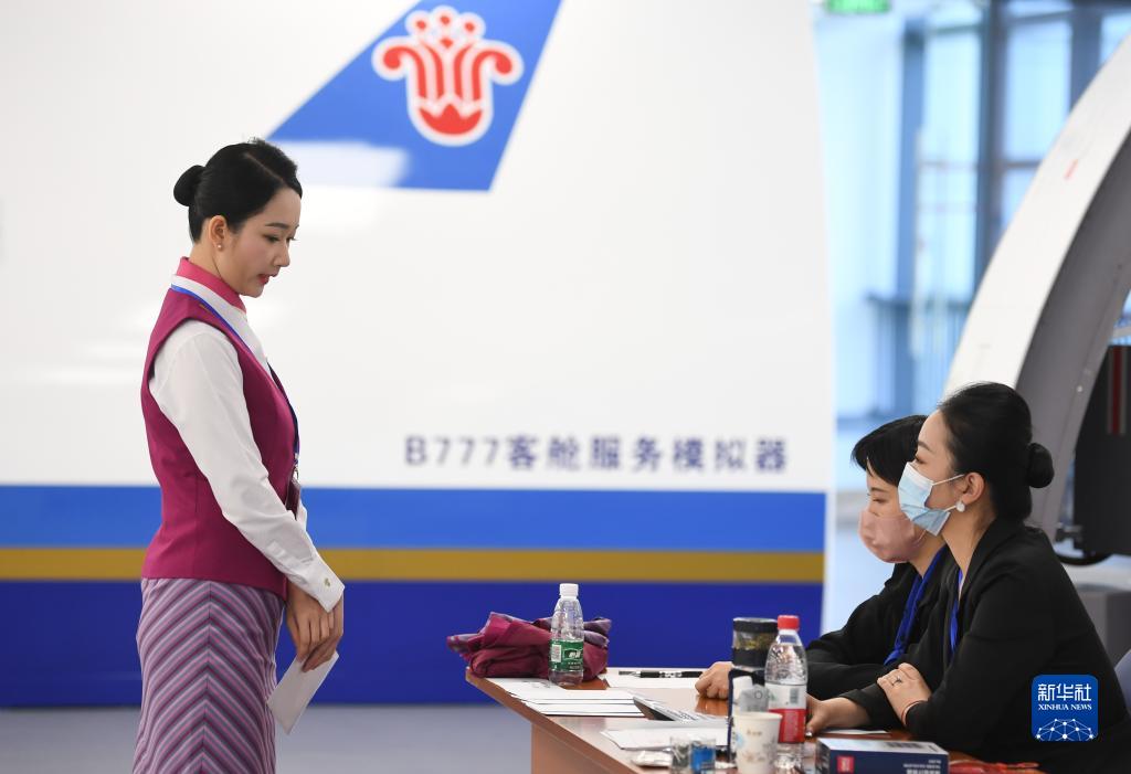 2月20日,參賽乘務(wù)員在中國南航廣州產(chǎn)教融合實(shí)訓基地參加技能大賽前抽取題目,準備進(jìn)入客艙模擬器。