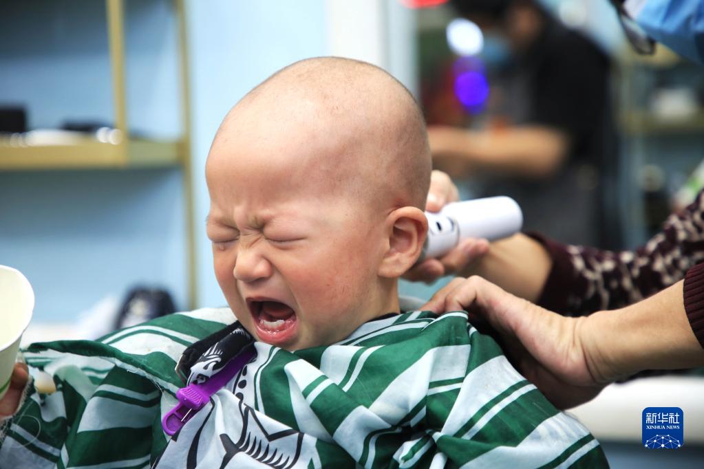 當日是農歷二月初二,許多家長(cháng)帶著(zhù)孩子“剃龍頭”,祈求孩子在新一年健康成長(cháng)。
