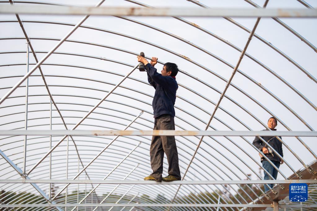 新華全媒+丨湖南醴陵:搶建育秧大棚備春耕