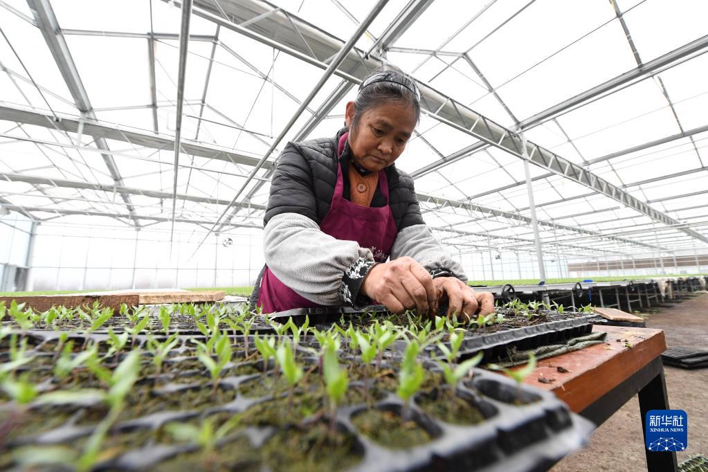2月22日,在貴州省榕江縣車(chē)江壩區育苗大棚里,農民在管護作物幼苗。