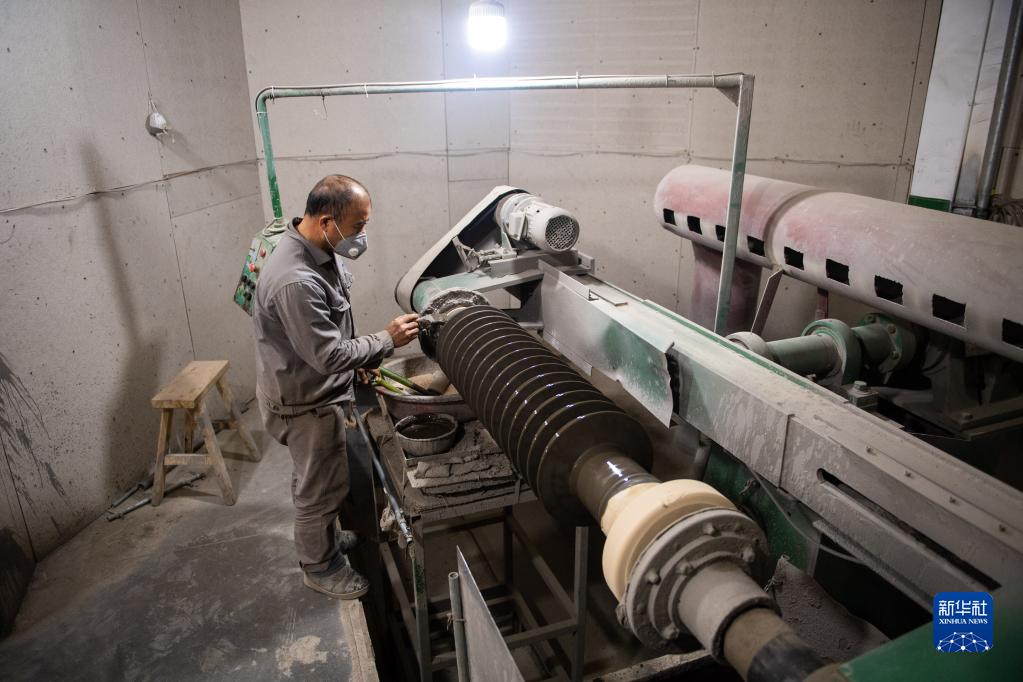 2月22日,在位于醴陵市的湖南陽(yáng)東電瓷電氣股份有限公司生產(chǎn)車(chē)間,工作人員給瓷絕緣子上釉。