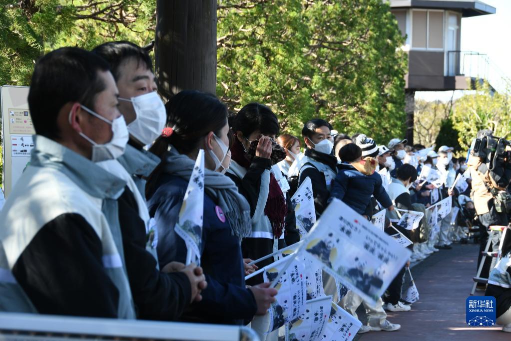 2月22日,在日本和歌山縣白浜町的“冒險世界”樂(lè )園,工作人員列隊送別三只大熊貓。