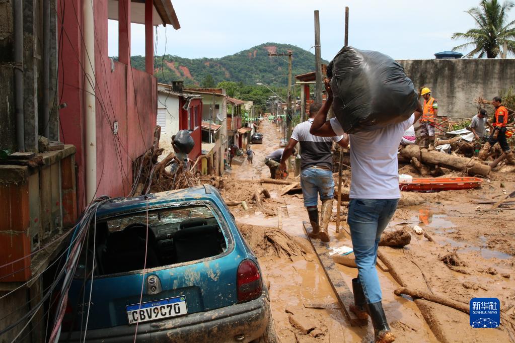 2月22日,在巴西圣保羅州圣塞巴斯蒂昂,人們參與救災行動(dòng)。