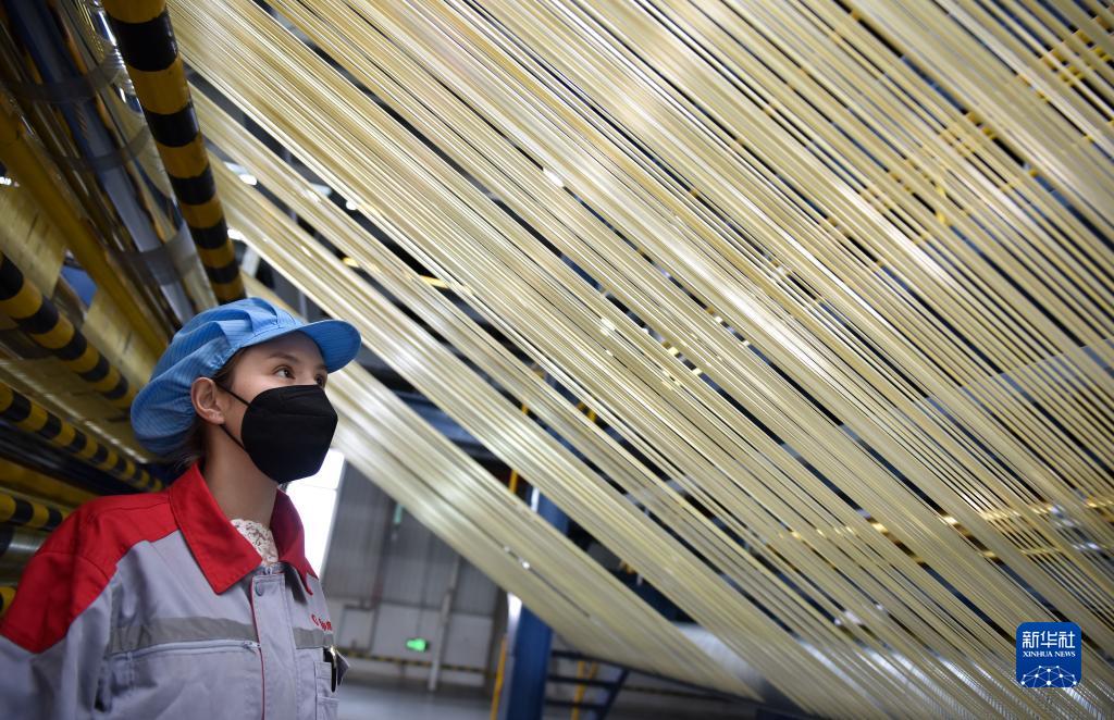 2月22日,在中復神鷹碳纖維西寧有限公司,工作人員在檢查碳纖維原絲。