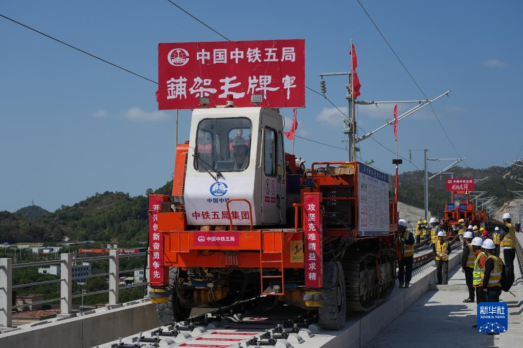 廣汕鐵路正線(xiàn)鋪軌貫通