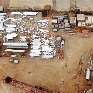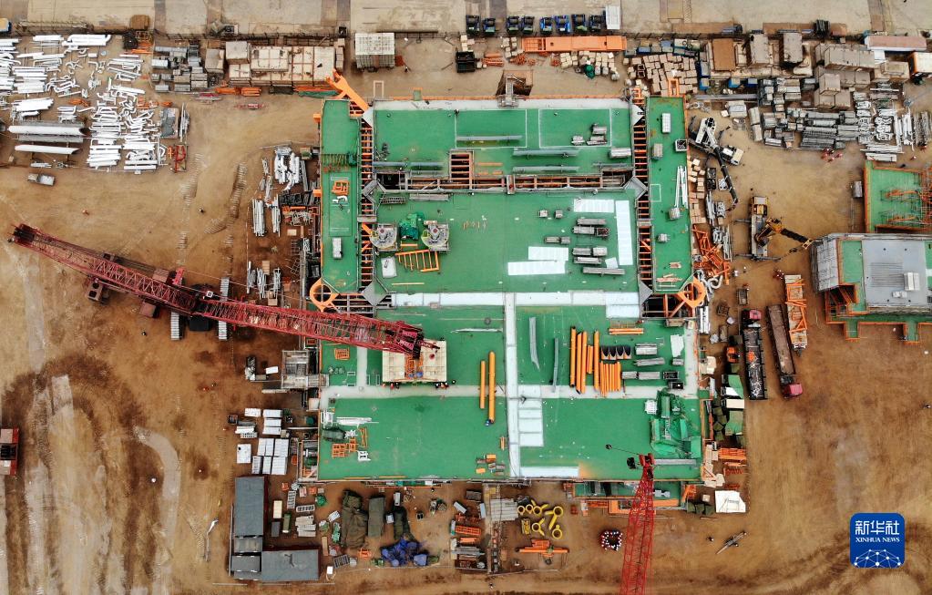 這是正在建造中的渤中19-6凝析氣田一期CEPA(中心處理平臺)組塊(2月22日,無(wú)人機照片)。
