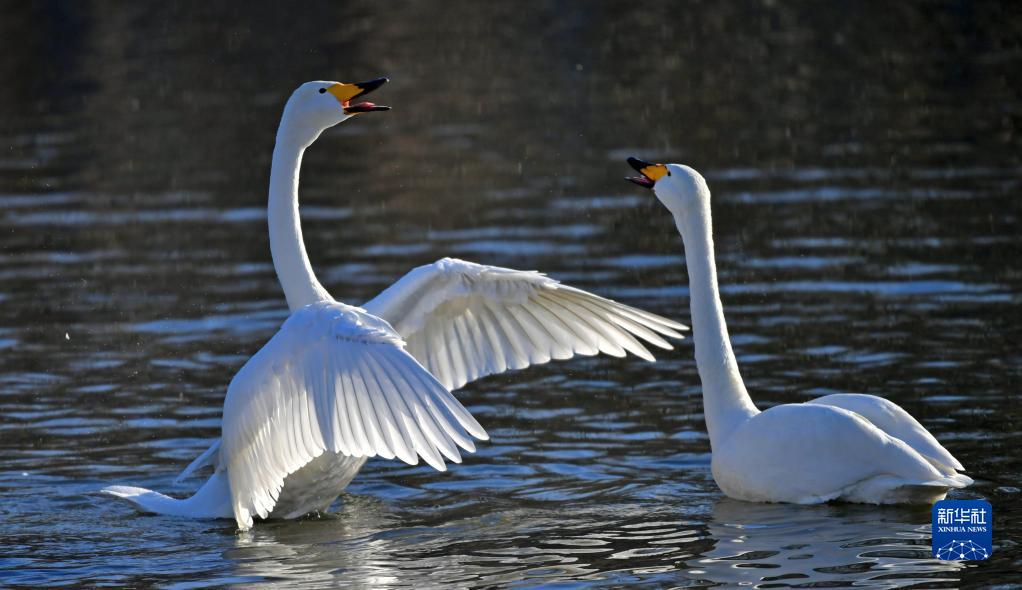 入冬以來(lái),遼寧省北票市八家子鄉紅村大凌河畔的400多只白天鵝在河水淺灘處嬉戲覓食,吸引人們前來(lái)觀(guān)賞和拍照。