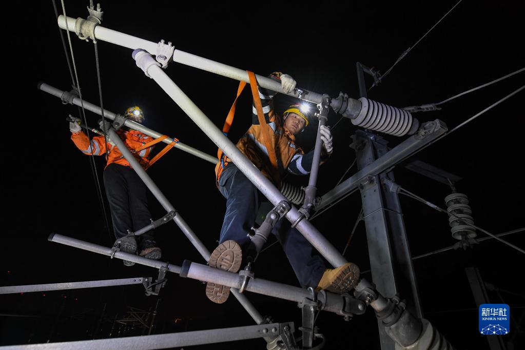 每日0至4時(shí),中國鐵路上海局集團有限公司上海高鐵基礎設施段的綜合維修工們都要在滬寧城際高鐵沿線(xiàn)對接觸網(wǎng)設備進(jìn)行全面“體檢”,守護高鐵運行安全。綜合維修工的日常工作包括接觸網(wǎng)絕緣子清掃、吊弦更換、隔離開(kāi)關(guān)檢修等。