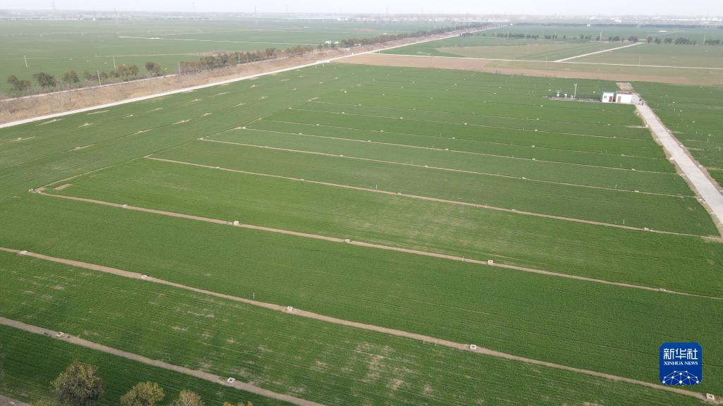 2月21日拍攝的太和縣淙祥現代農業(yè)種植專(zhuān)業(yè)合作社里的高產(chǎn)攻關(guān)示范田(無(wú)人機照片)。