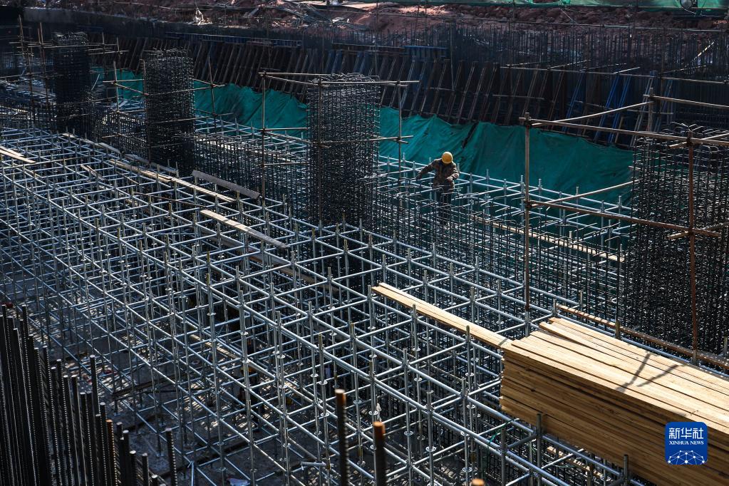 工人在長(cháng)春市城市軌道交通6號線(xiàn)03標段三工區華慶路站施工現場(chǎng)作業(yè)(2月23日攝)。