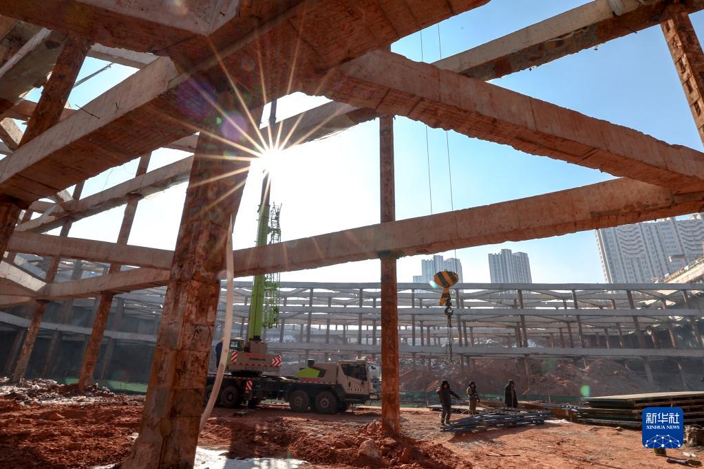 工人在長(cháng)春市城市軌道交通6號線(xiàn)03標段三工區華慶路站施工現場(chǎng)作業(yè)(2月23日攝)。