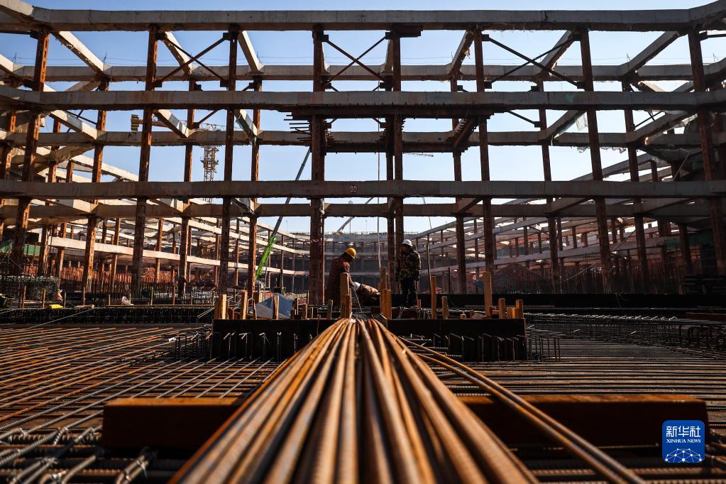 工人在長(cháng)春市城市軌道交通6號線(xiàn)03標段三工區華慶路站施工現場(chǎng)作業(yè)(2月23日攝)。