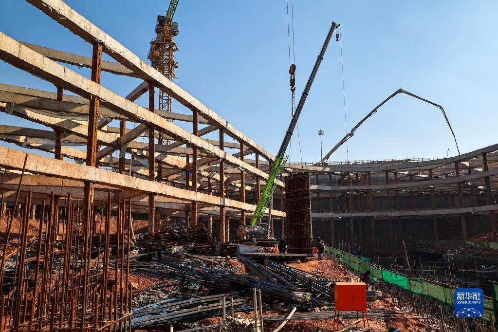 工人在長(cháng)春市城市軌道交通6號線(xiàn)03標段三工區華慶路站施工現場(chǎng)作業(yè)(2月23日攝)。