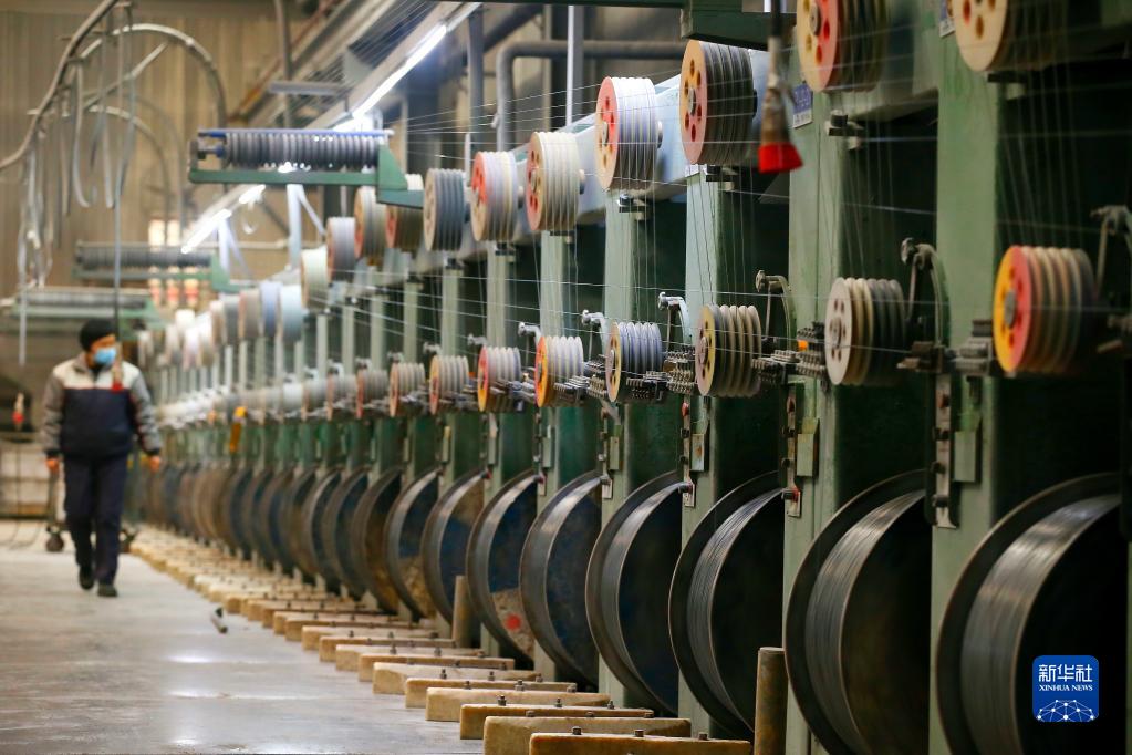 2月23日,在位于青島市即墨區科技創(chuàng )新園的青島高麗鋼線(xiàn)有限公司,工人在胎圈鋼絲生產(chǎn)線(xiàn)上生產(chǎn)鋼線(xiàn)產(chǎn)品。