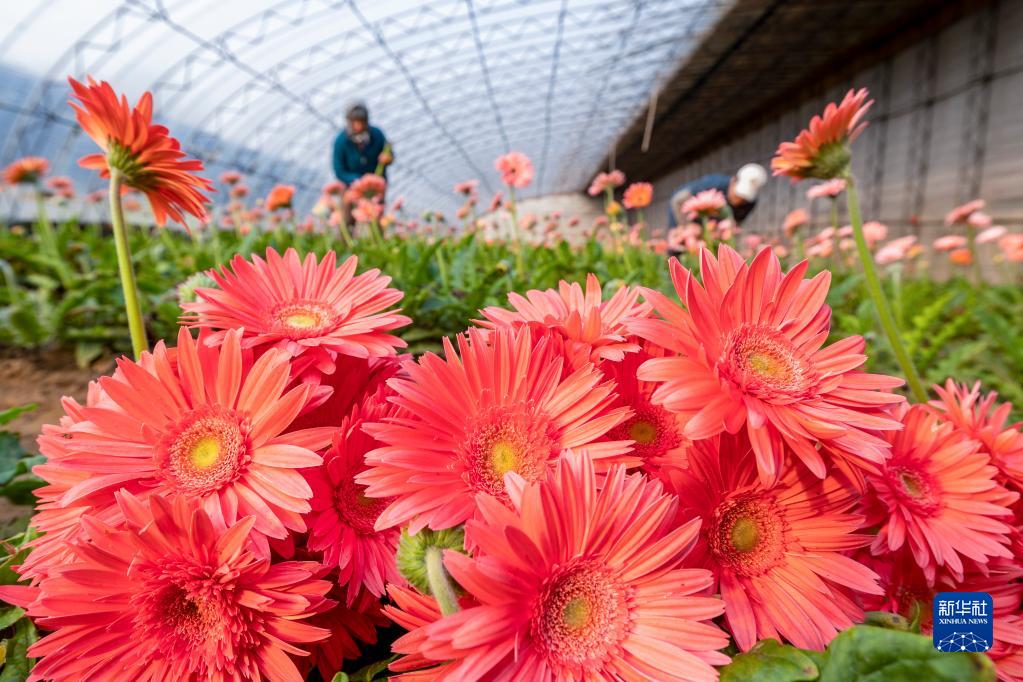 2月23日,農民在河北省唐山市豐南區大新莊鎮柳林村花卉種植基地采收鮮花。