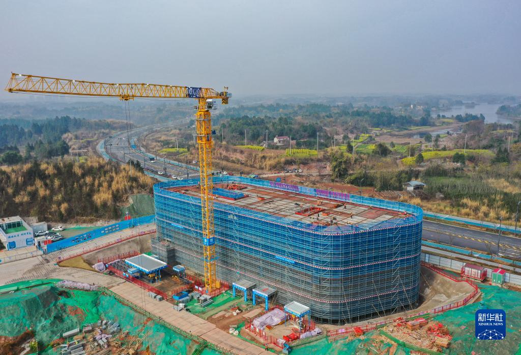 這是2月24日在成都東部新區拍攝的四川大學(xué)華西東部醫院項目現代國際急診急救中心1號樓(無(wú)人機照片)。