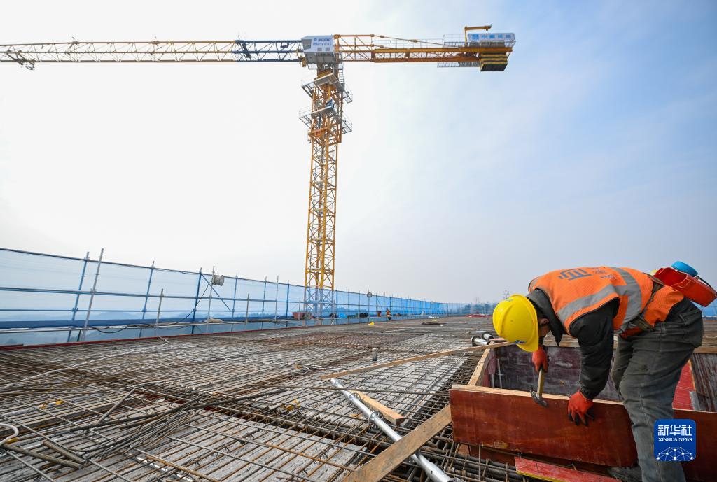 2月24日,在位于成都東部新區的四川大學(xué)華西東部醫院項目建設現場(chǎng),工人在進(jìn)行封頂施工作業(yè)。