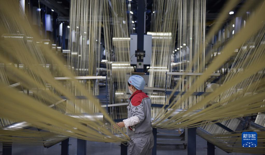 2月22日,在中復神鷹碳纖維西寧有限公司,工作人員在整理碳纖維原絲。