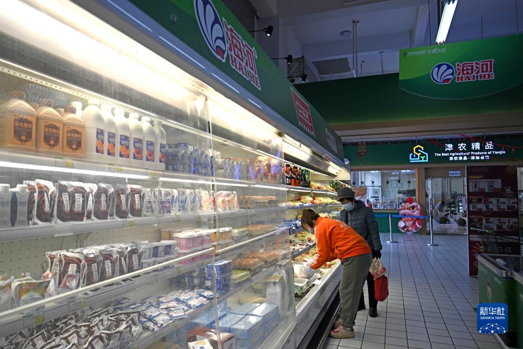 在天津食品集團津農精品體驗店,顧客在選購乳制品(2月23日攝)。