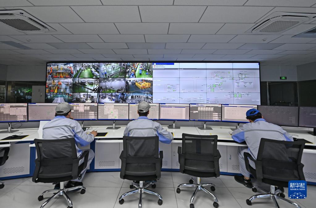 在天津海河乳品有限公司智能化生產(chǎn)線(xiàn)控制中心內,工作人員在監控生產(chǎn)線(xiàn)運轉情況(2月20日攝)。