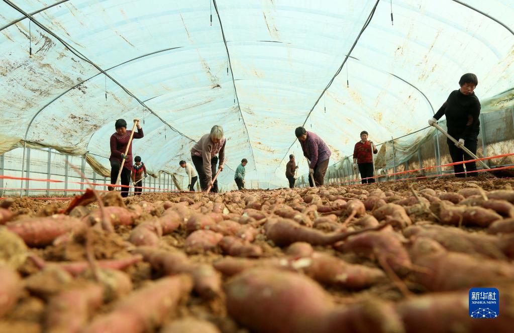 2月24日,在河南省洛陽(yáng)市汝陽(yáng)縣劉店鎮洪嶺村,農民在溫室大棚育紅薯苗。