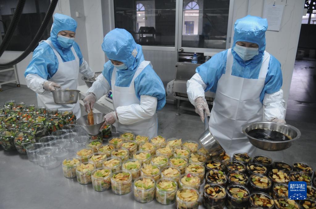 2月24日,山東美途食品有限公司員工在進(jìn)行灌裝作業(yè)。