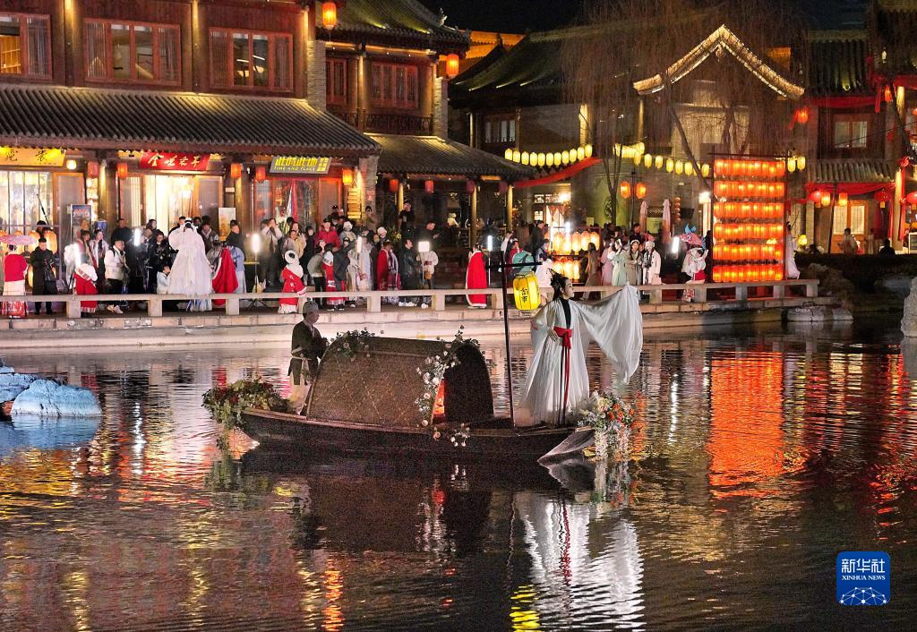 演員在洛陽(yáng)市洛邑古城內為游客表演(2月22日攝)。