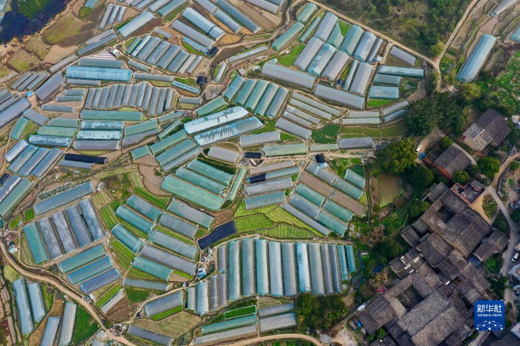 2月25日拍攝的福州市閩侯縣荊溪鎮蔬菜基地景觀(guān)(無(wú)人機照片)。