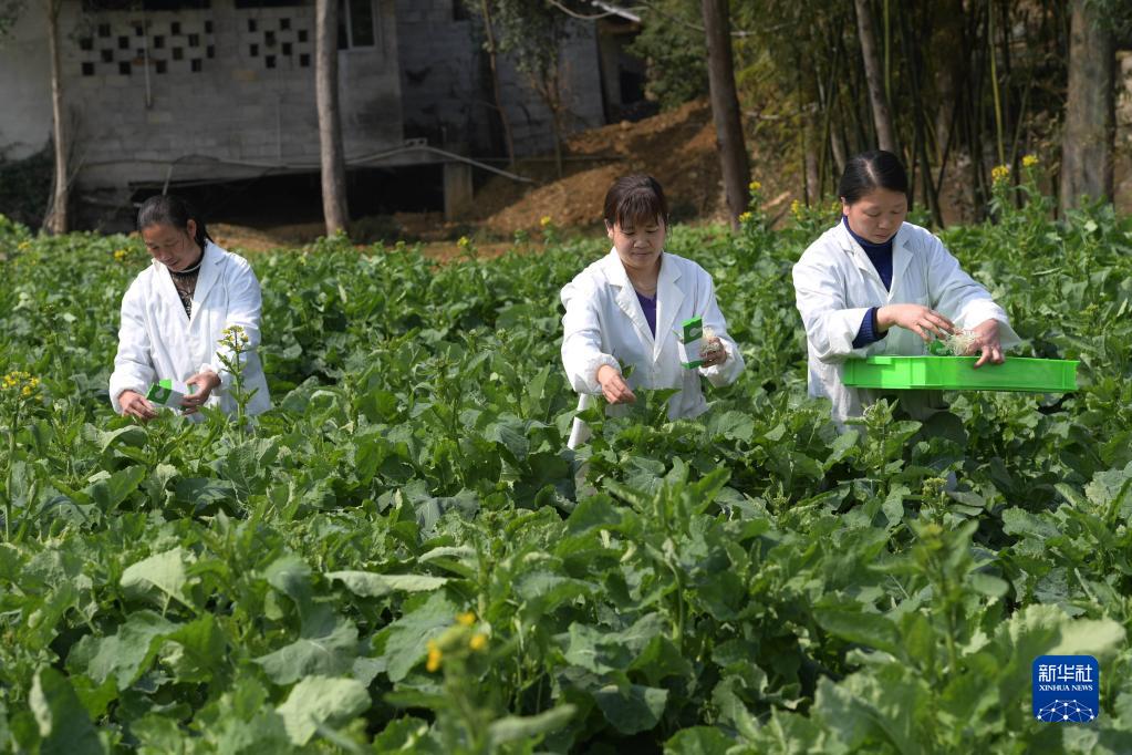 2月26日,貴州省鳳岡縣天敵昆蟲(chóng)繁育中心的工作人員向油菜基地投放天敵昆蟲(chóng)。