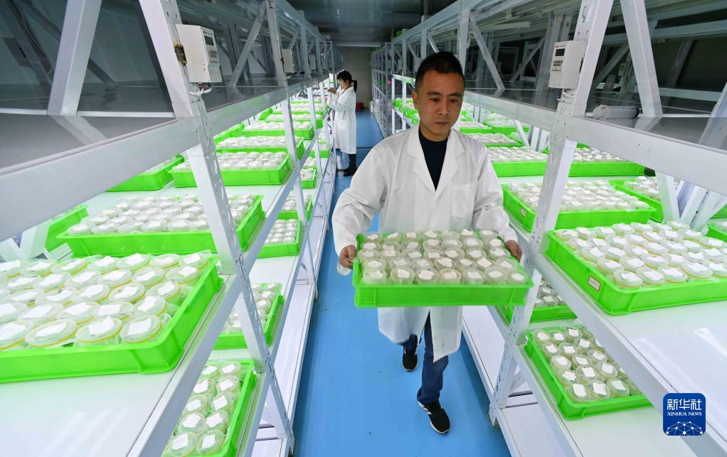 2月26日,貴州省鳳岡縣天敵昆蟲(chóng)繁育中心工作人員將已配對好的雄雌躅蝽放進(jìn)恒溫室培育。