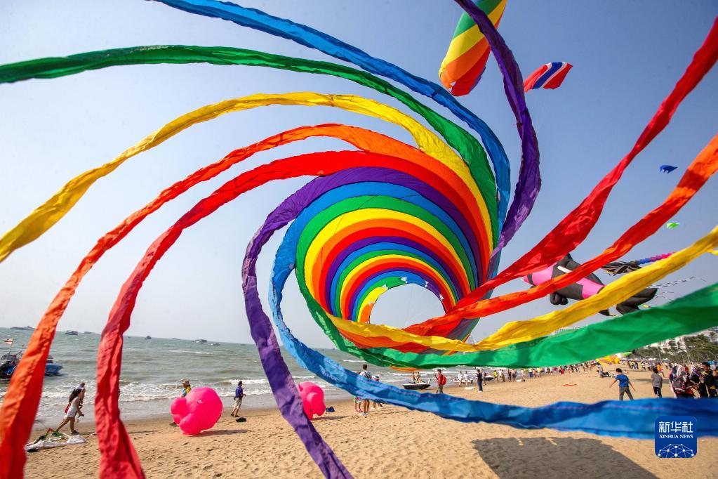 這是2月27日在泰國芭提雅海灘拍攝的大型風(fēng)箏。泰國芭提雅近日舉辦海灘風(fēng)箏節。