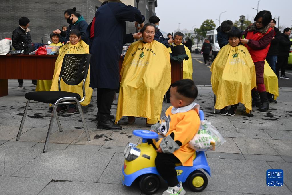 3月1日,志愿者在寧波市奉化區錦屏街道錦軒社區免費為居民理發(fā)。
