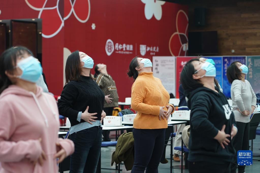 顧客在位于北京大興區的同仁堂知嘛健康零號店體驗健康訓練課程(2月27日攝)。