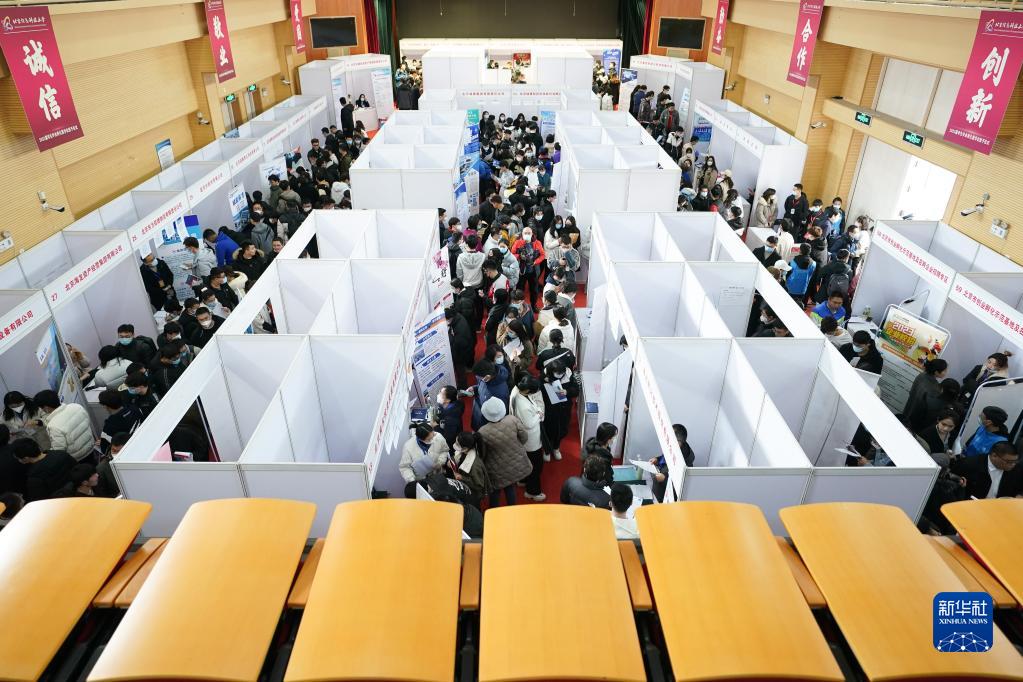 3月1日,在北京信息科技大學(xué),求職學(xué)生在招聘會(huì )內求職。